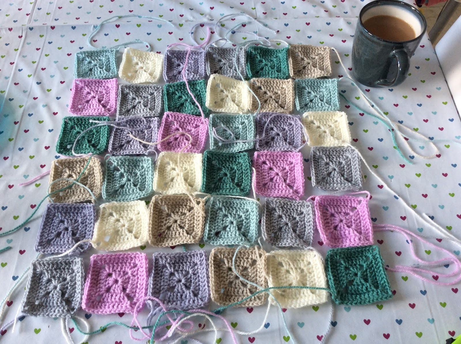 For the back I alternated rows of cream with rows of colour until the square was big enough